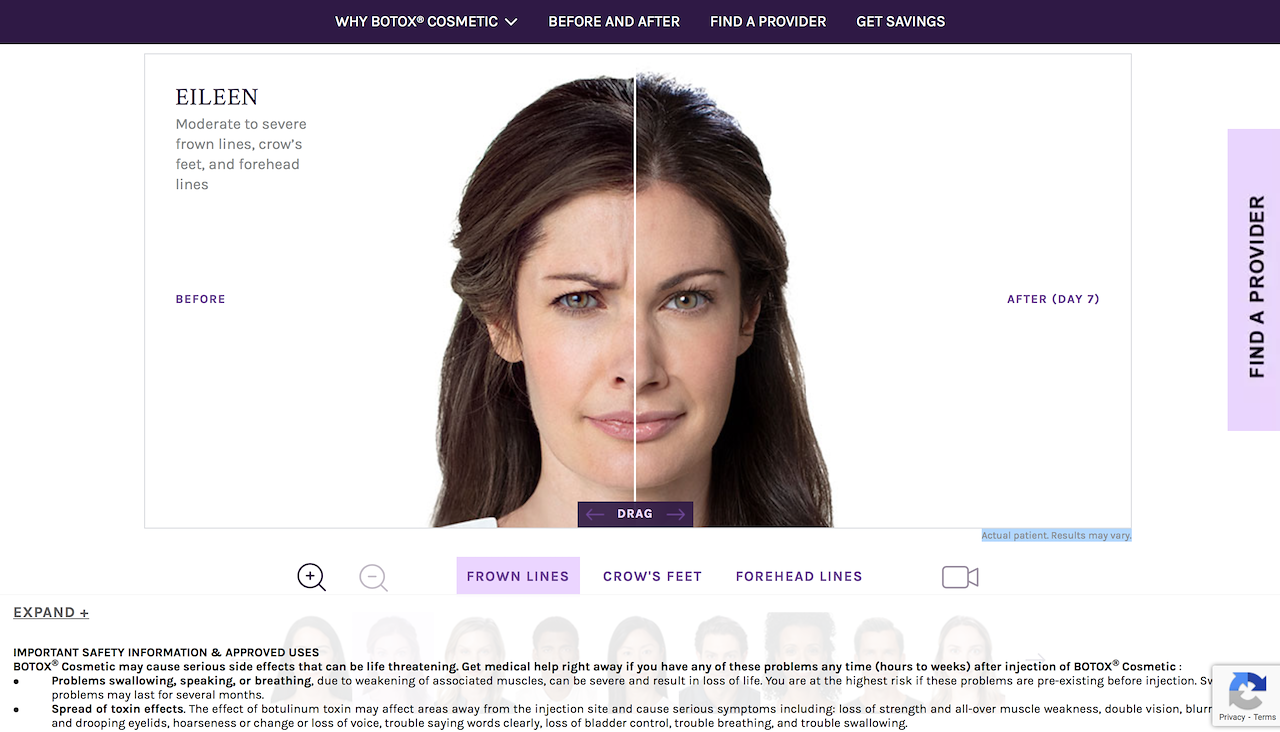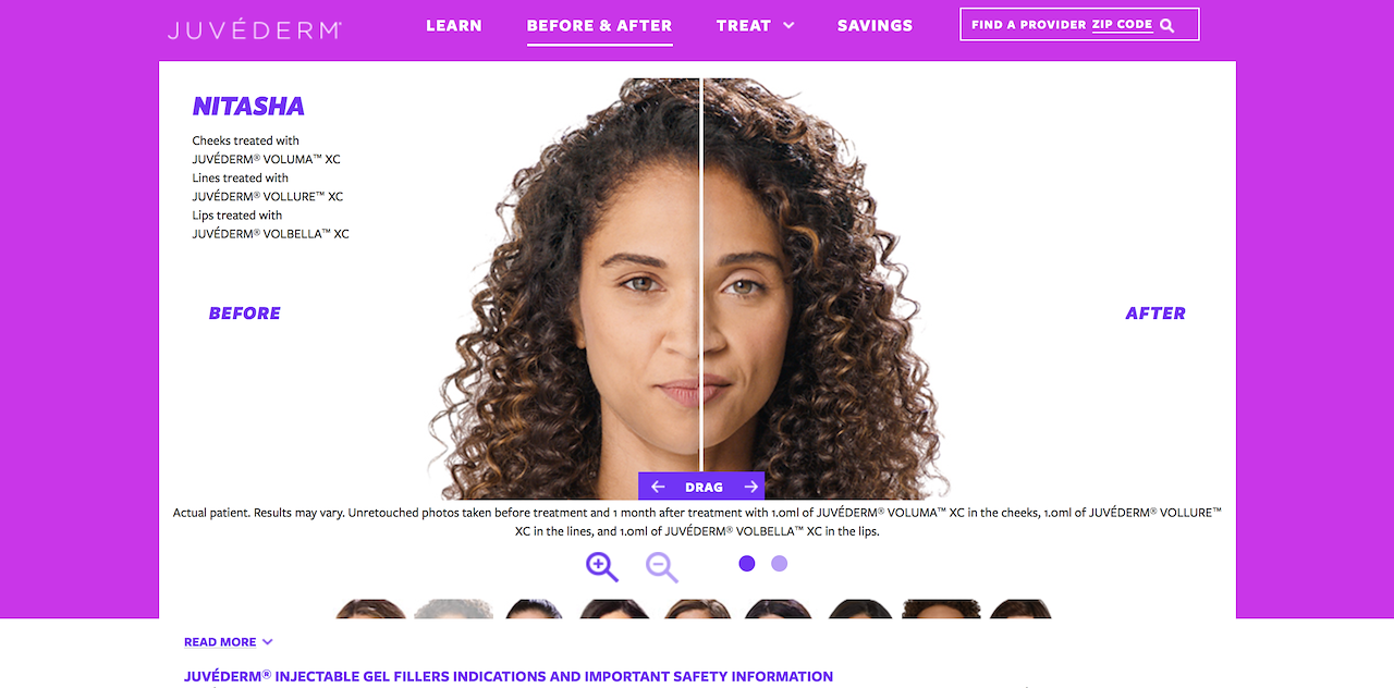 For Allergan’s medical aesthetic brands, Botox Cosmetic and Juvéderm we followed the treatment journey of 7 people for each brand. The Before/After shoot took approximately 8 weeks to shoot and capture before treatment, 7 days after treatment, 30 days after, plus a lifestyle shoot.